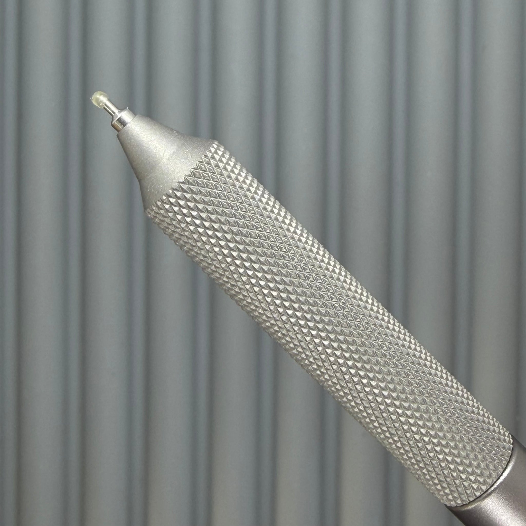 This pen features our diamond flat knurl grip, which is medium on the grippy-ness scale.